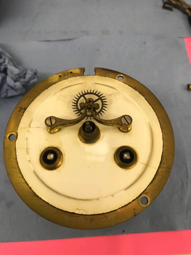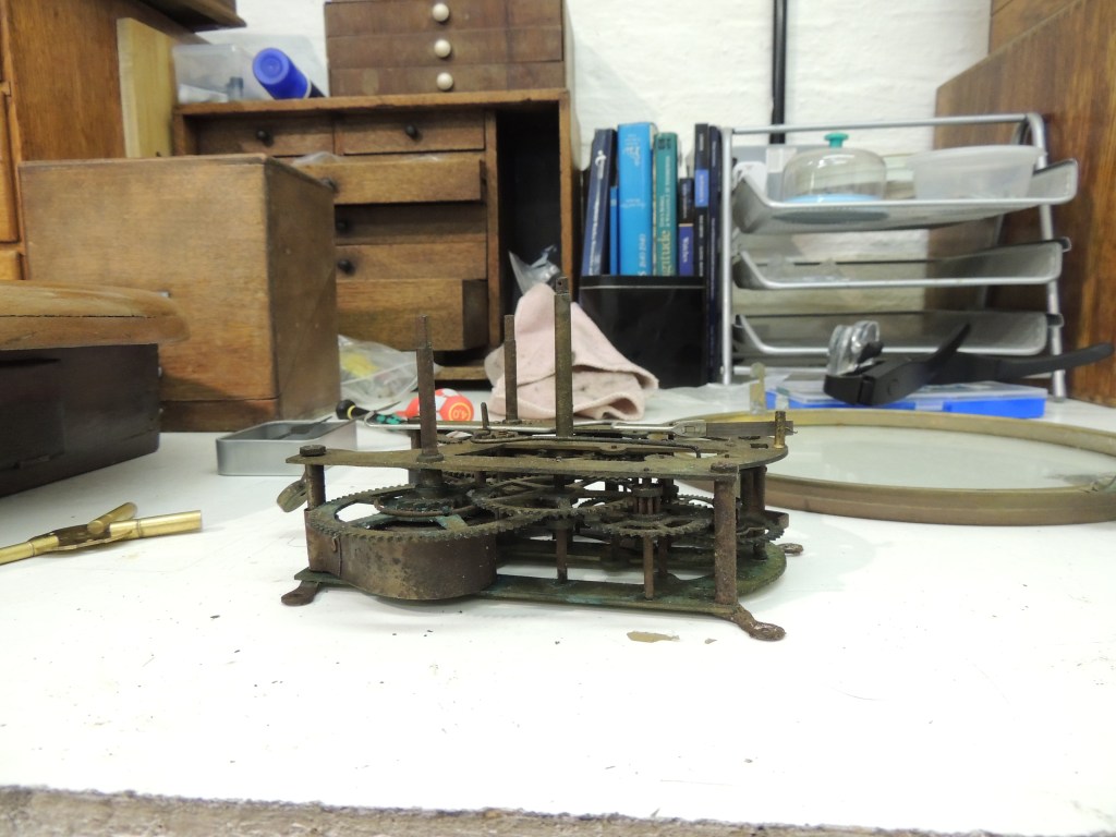 Here we have a lovely wall clock from the 1920’s which had a broken suspension spring & a mainspring slipping on its arbour.